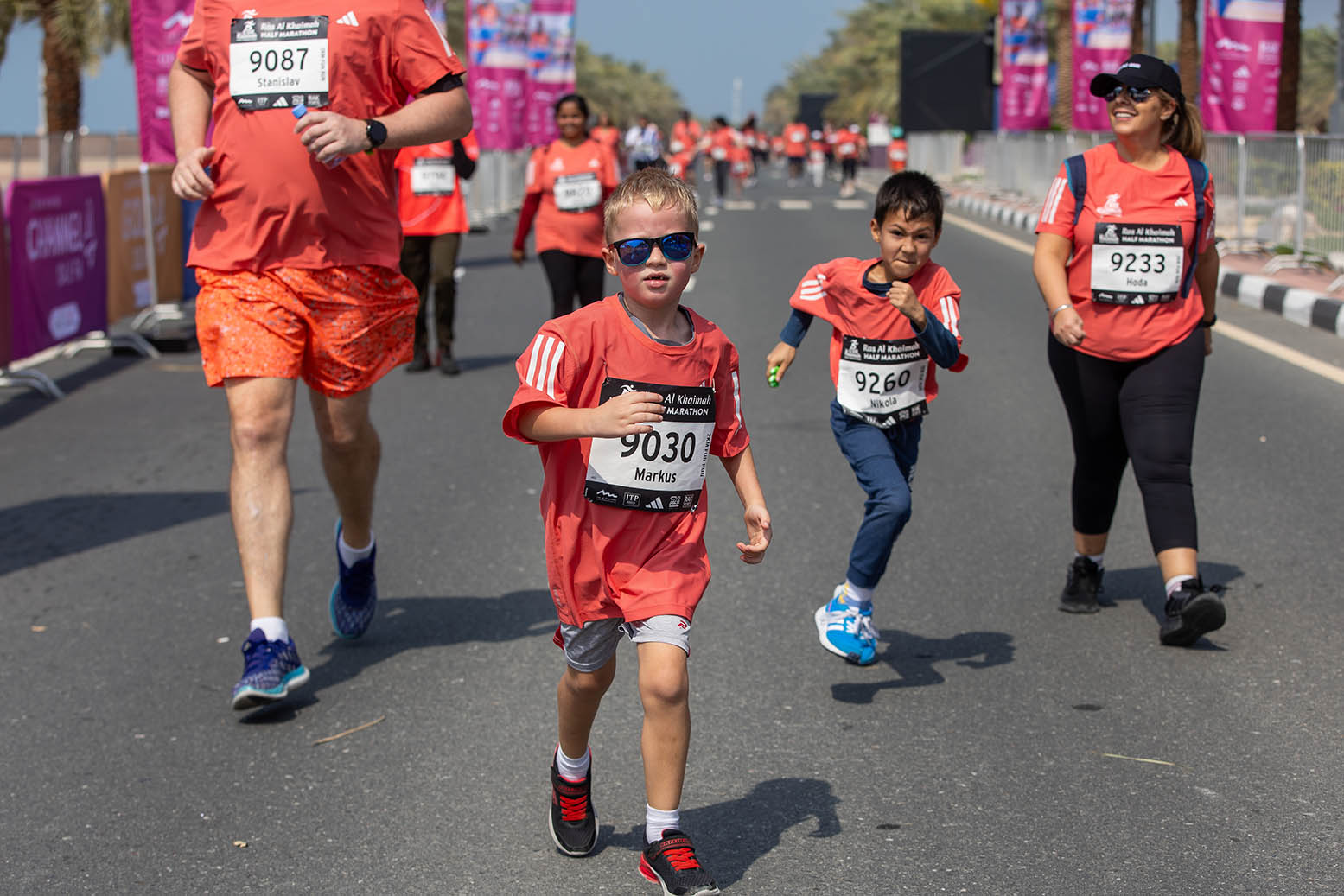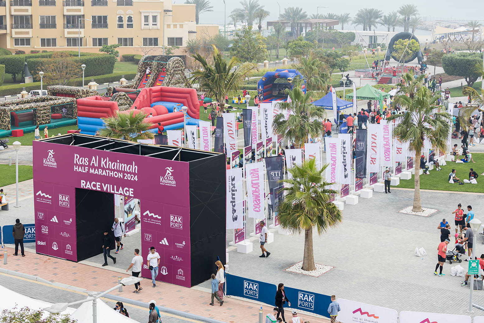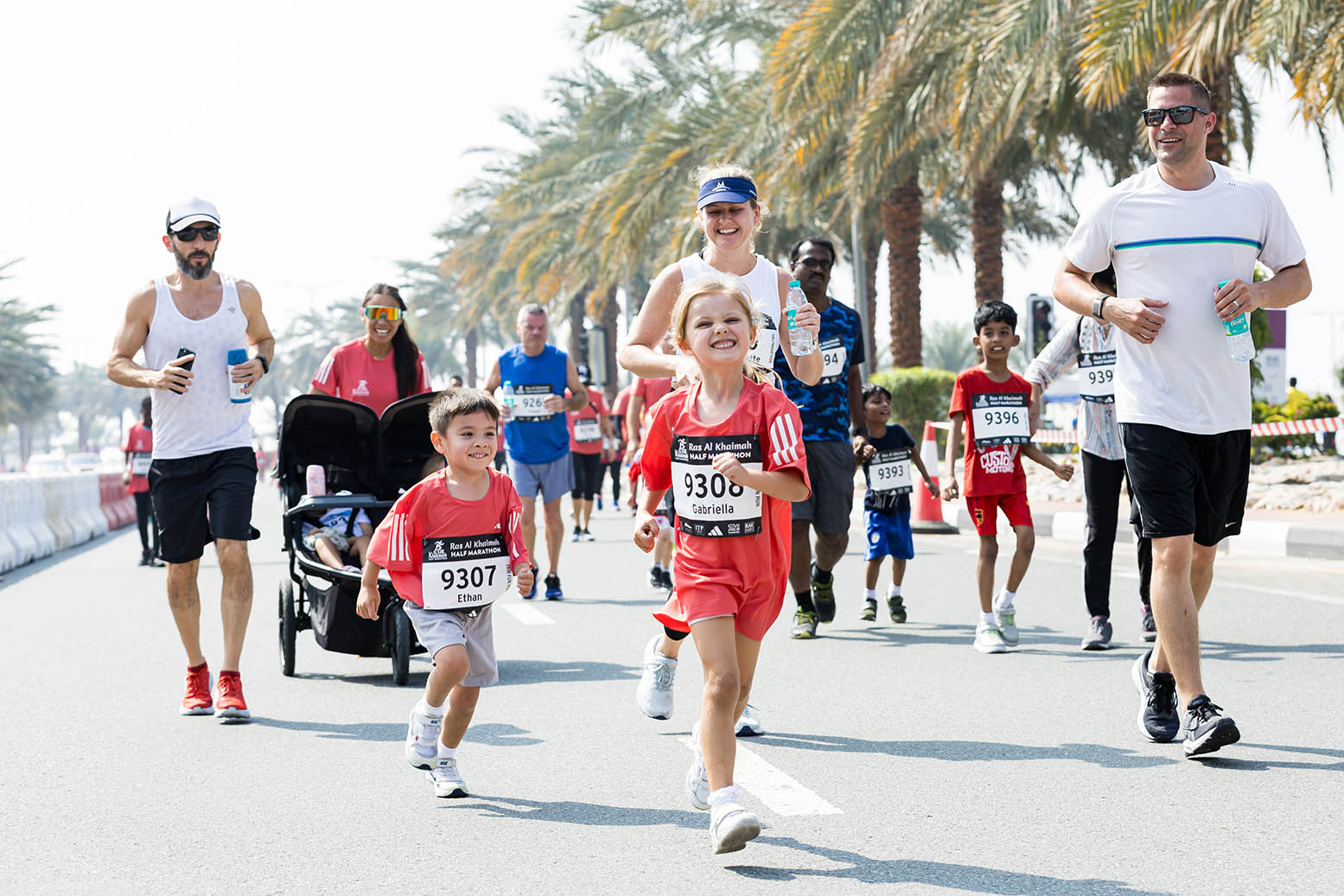 Selection of photos from the mass races featuring community runners including families and children across all the races and at the race village.